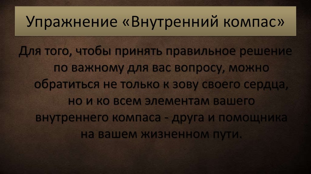 Упражнение «Внутренний компас»Для того, чтобы принять правильное решение