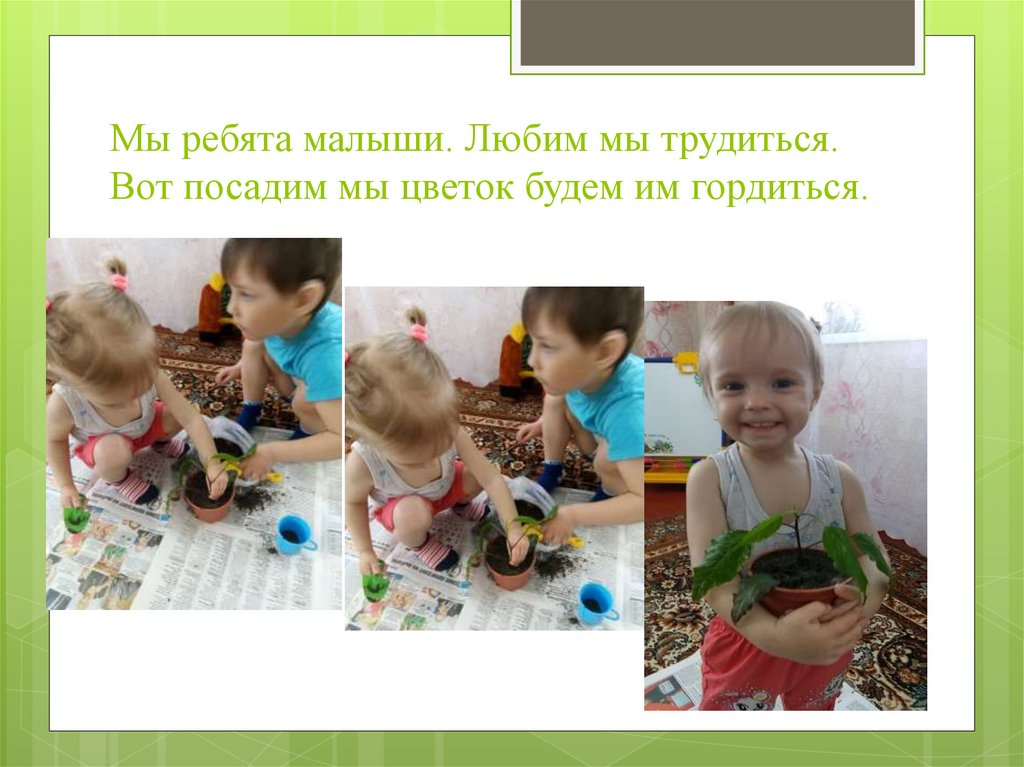 Мы ребята малыши. Любим мы трудиться.Вот посадим мы цветок будем им гордиться.