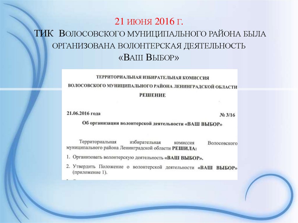 21 ИЮНЯ 2016 Г.ТИК ВОЛОСОВСКОГО МУНИЦИПАЛЬНОГО РАЙОНА БЫЛА