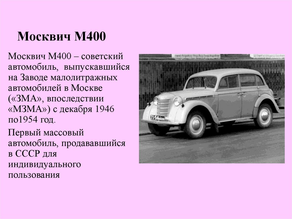 «Москвич» - М400• После войны страна быстро