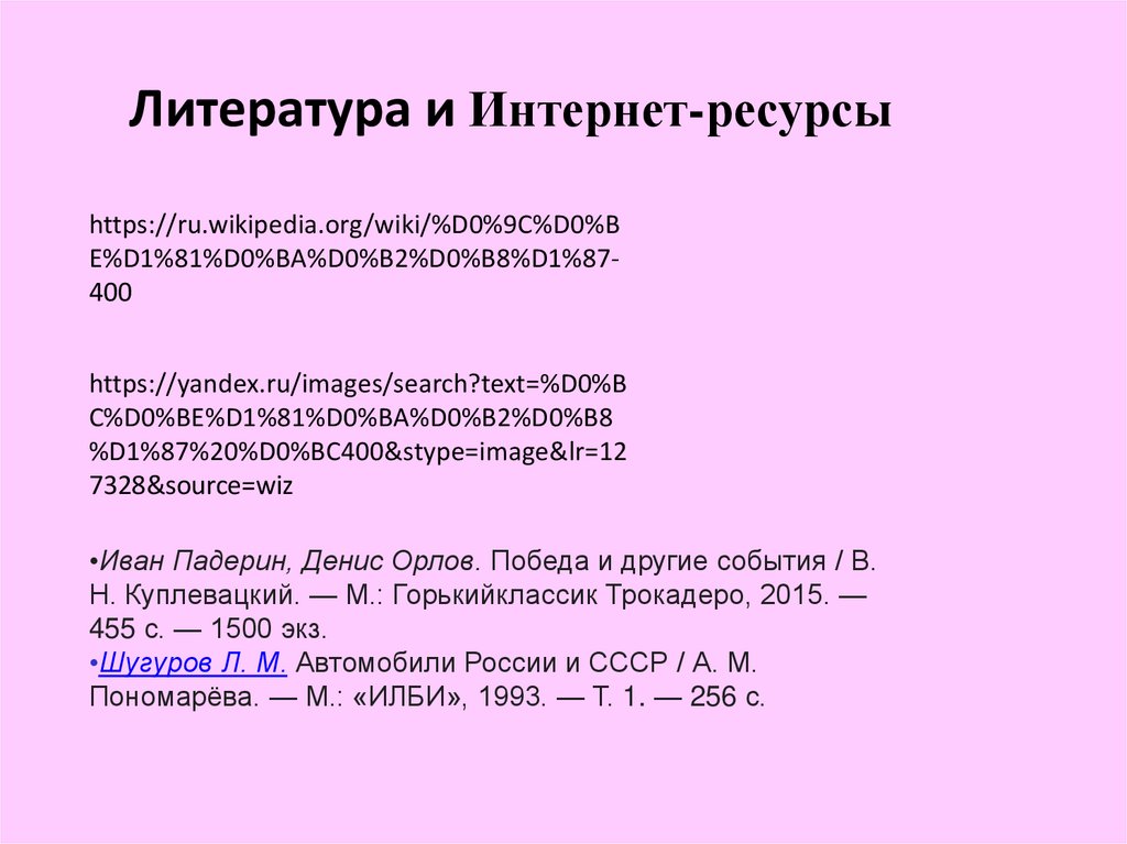 Литература и Интернет-ресурсыhttps://ru.wikipedia.org/wiki/%D0%9C%D0%B
