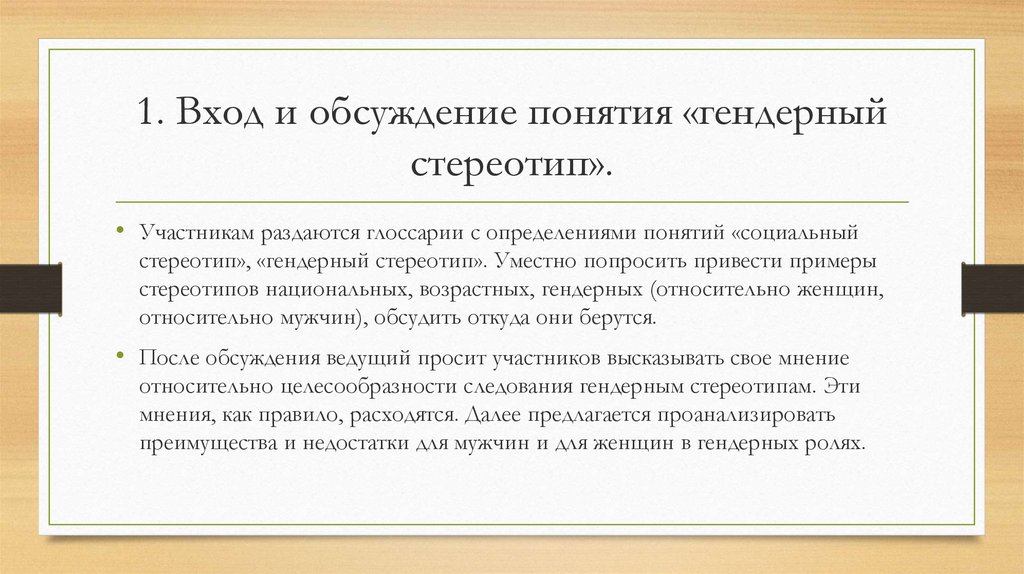 1. Вход и обсуждение понятия «гендерныйстереотип».