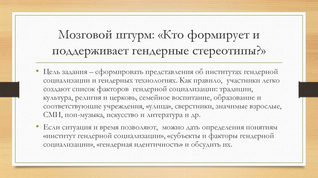 Мозговой штурм: «Кто формирует иподдерживает гендерные стереотипы?»