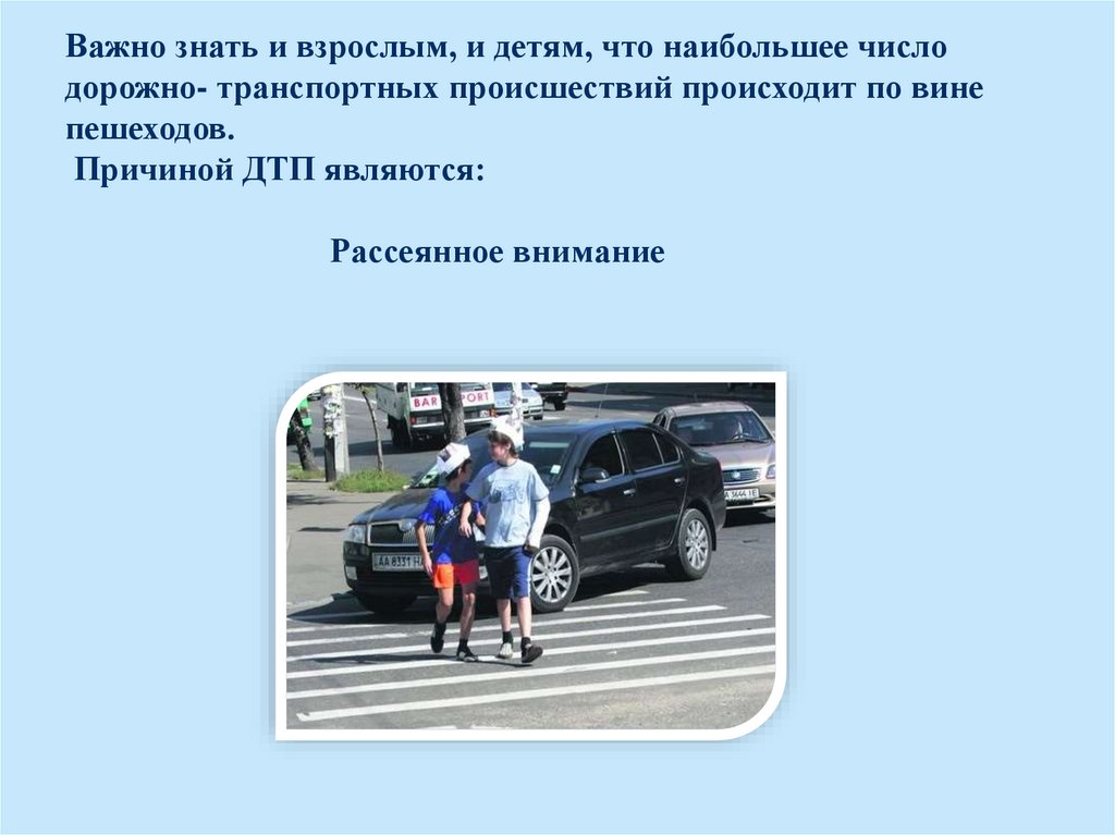 Важно знать и взрослым, и детям, что наибольшее числодорожно- транспортных происшествий происходит по вине
