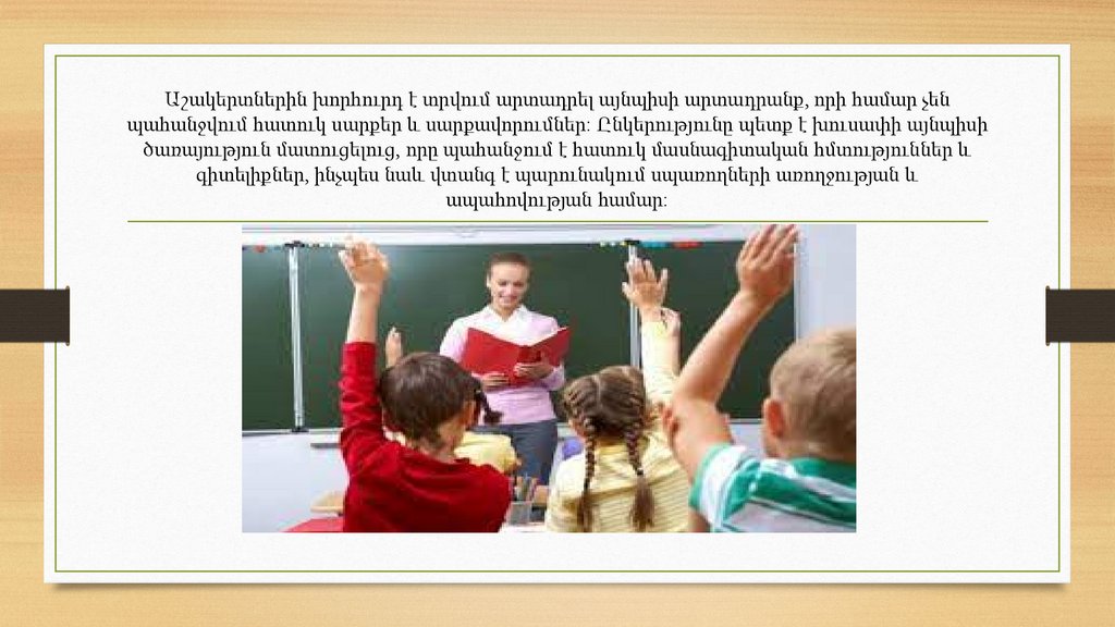 Աշակերտներին խորհուրդ է տրվում արտադրել այնպիսի արտադրանք, որի համար չենպահանջվում հատուկ սարքեր և սարքավորումներ։ Ընկերությունը պետք է խուսափի այնպիսի