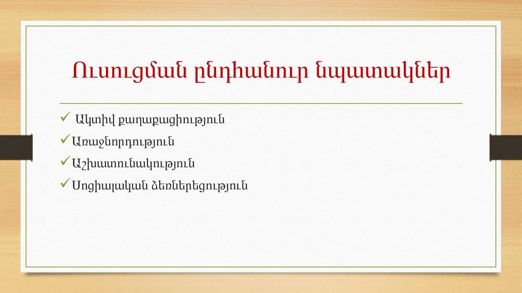 Ուսուցման ընդհանուր նպատակներԱկտիվ քաղաքացիություն