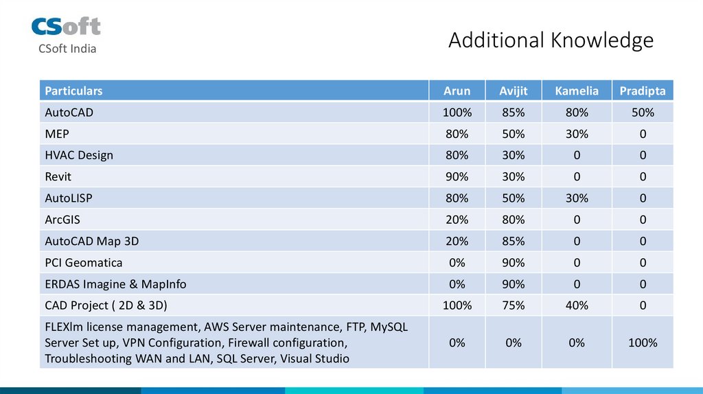 CSoft IndiaAdditional Knowledge