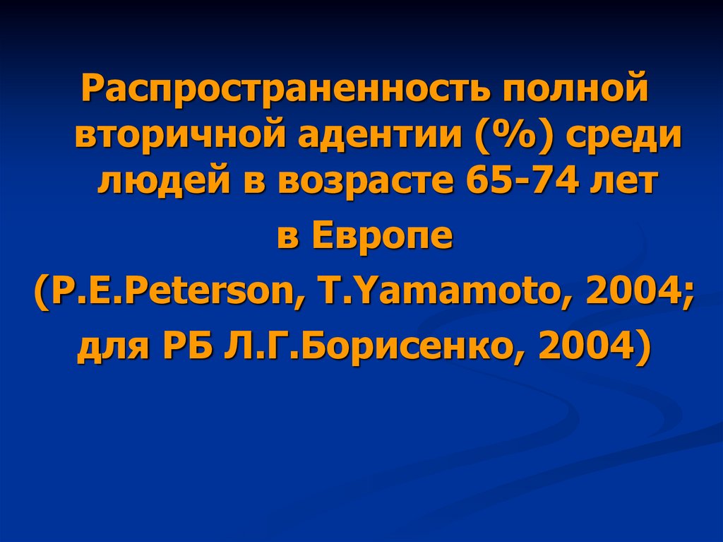 Распространенность полнойвторичной адентии (%) среди