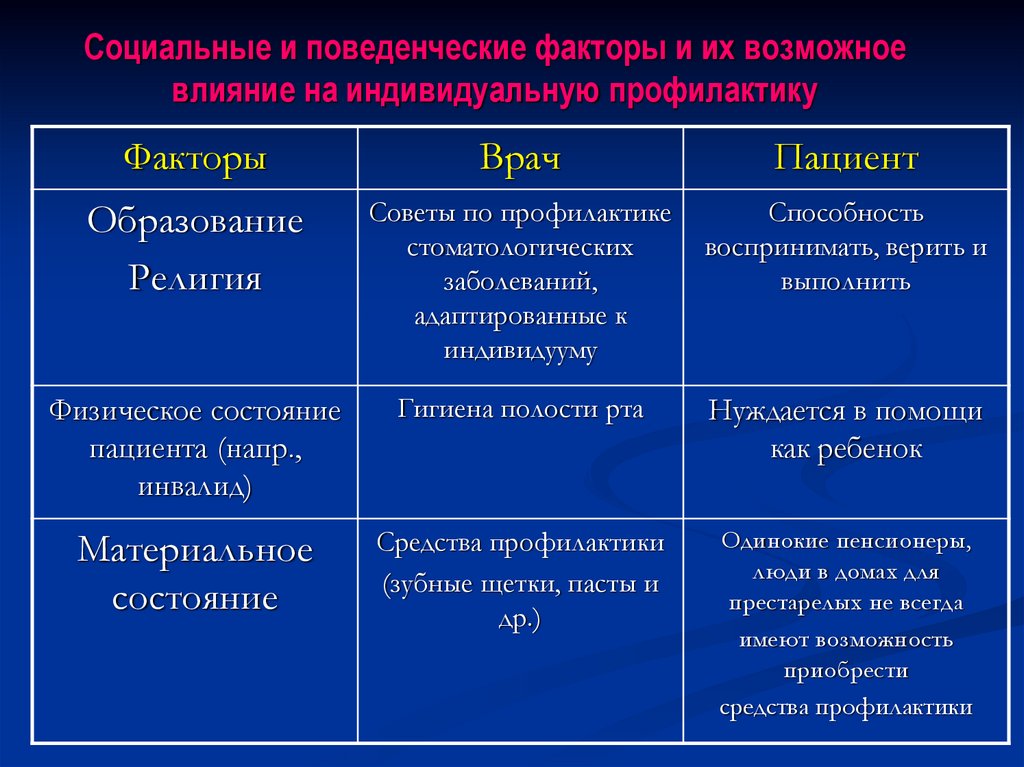 факторов риска (курение, плохая гигиена,