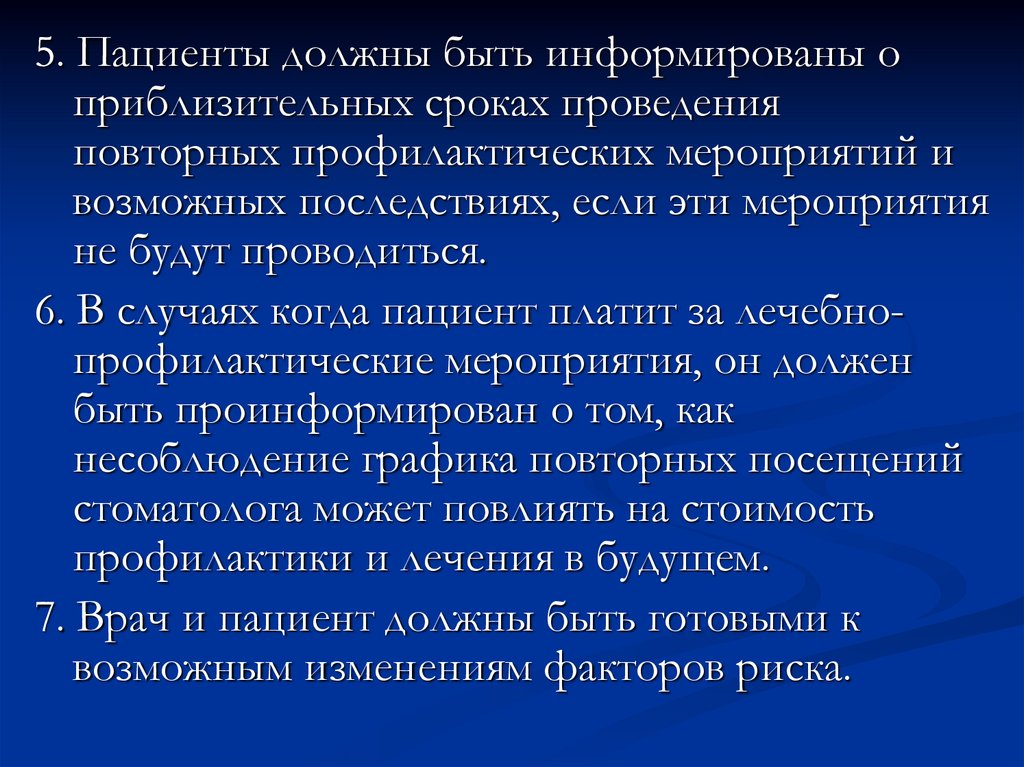 5. Пациенты должны быть информированы оприблизительных сроках проведения