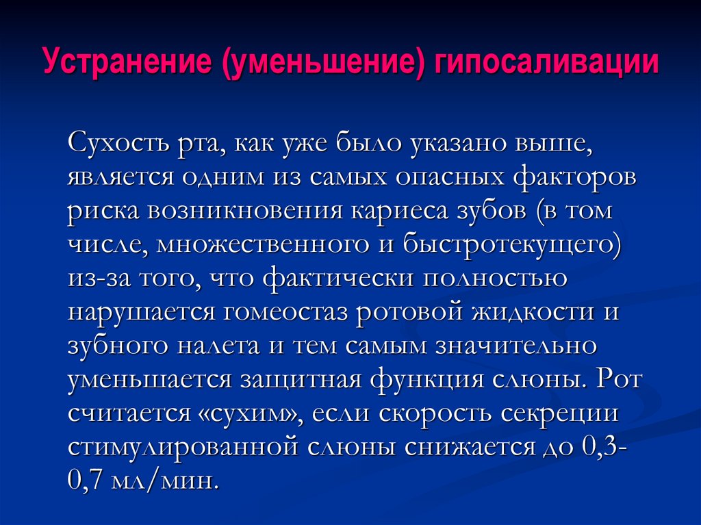 Устранение (уменьшение) гипосаливацииСухость рта, как уже было указано выше,
