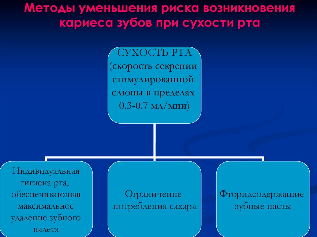 Методы уменьшения риска возникновениякариеса зубов при сухости рта