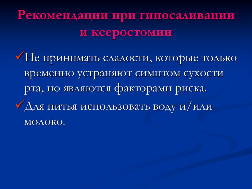Рекомендации при гипосаливациии ксеростомии
