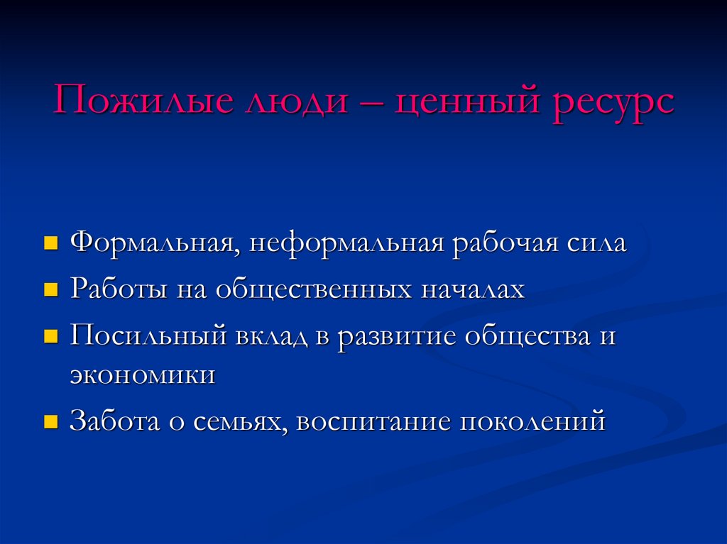 Пожилые люди – ценный ресурсФормальная, неформальная рабочая сила