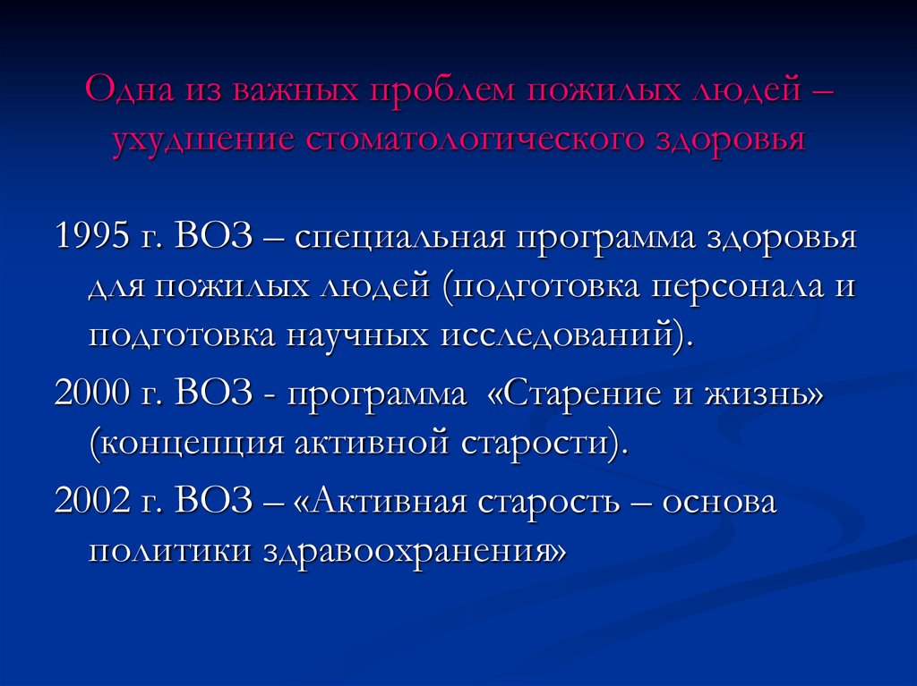 Стоматологическое здоровьепожилых людей