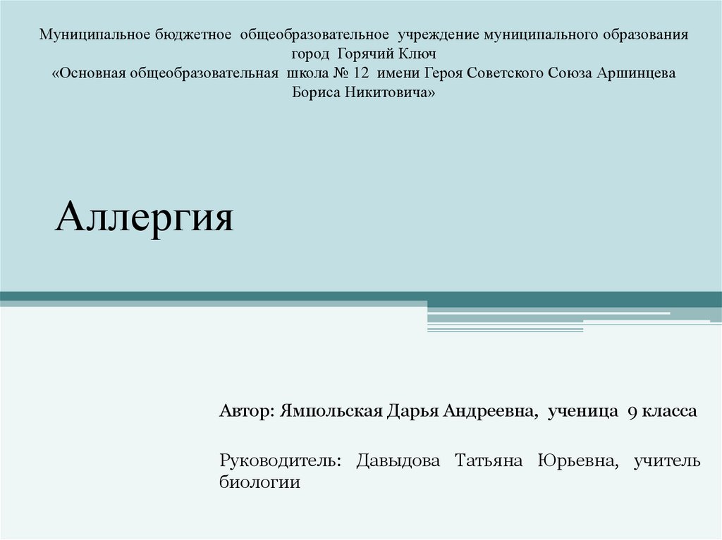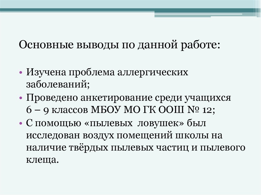 Основные выводы по данной работе:• Изучена проблема аллергических