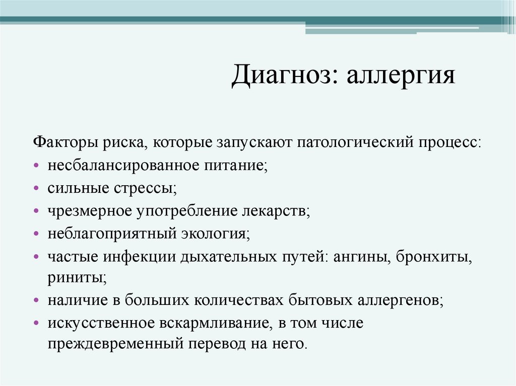 Диагноз: аллергияФакторы риска, которые запускают патологический процесс: