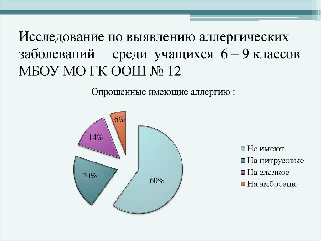 Исследование по выявлению аллергическихзаболеваний среди учащихся 6 – 9 классов