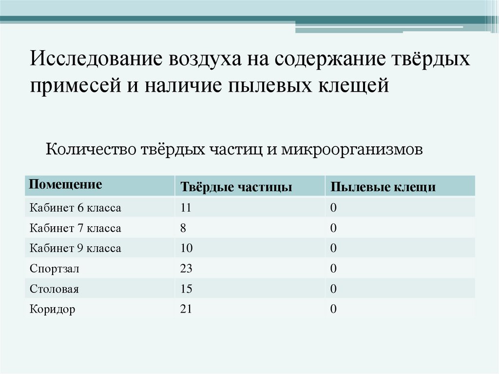 Исследование воздуха на содержание твёрдыхпримесей и наличие пылевых клещей