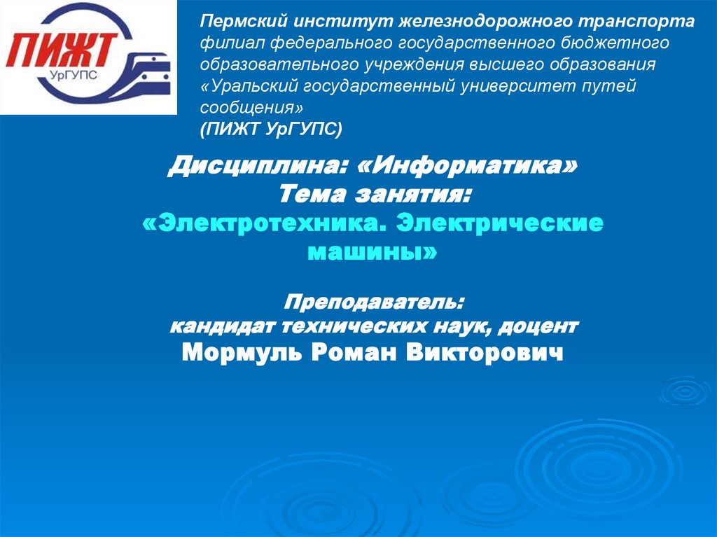 Пермский институт железнодорожного транспортафилиал федерального государственного бюджетного
