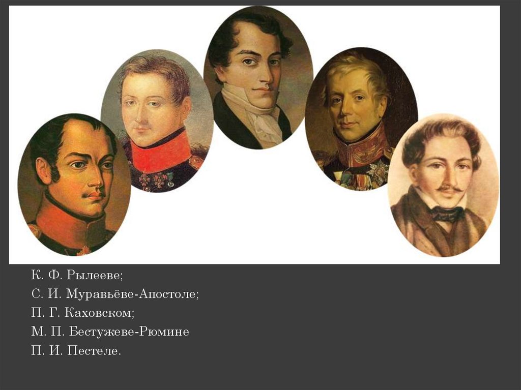 К. Ф. Рылееве;С. И. Муравьёве-Апостоле;