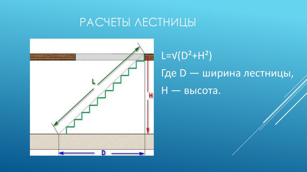 РАСЧЕТЫ ЛЕСТНИЦЫL=√(D²+H²)