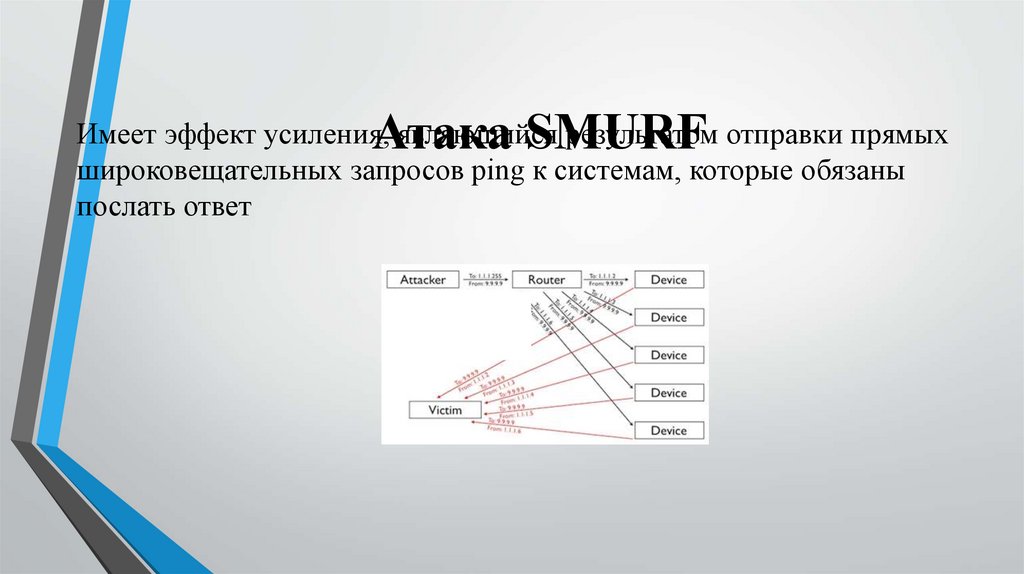 Атака SMURFИмеет эффект усиления, являющийся результатом отправки прямых