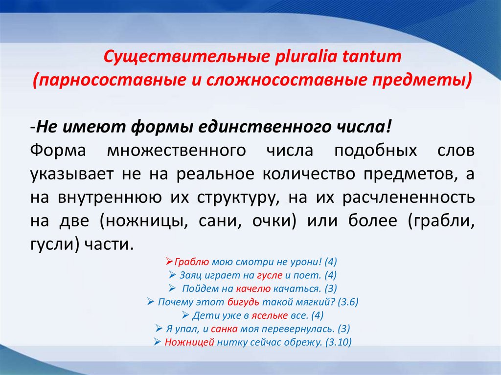 Существительные pluralia tantum(парносоставные и сложносоставные предметы)