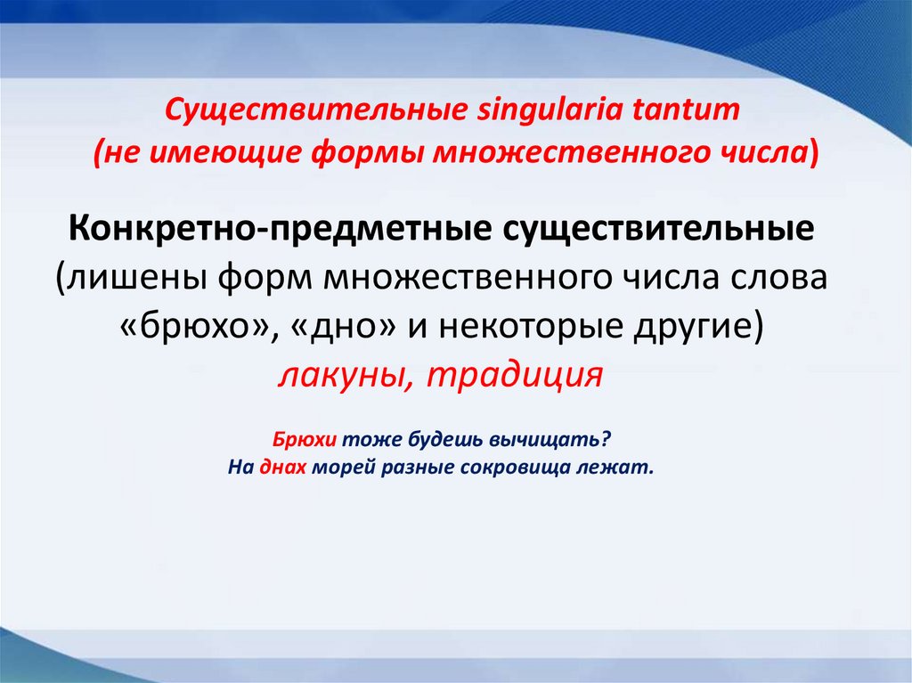 Существительные singularia tantum(не имеющие формы множественного числа)