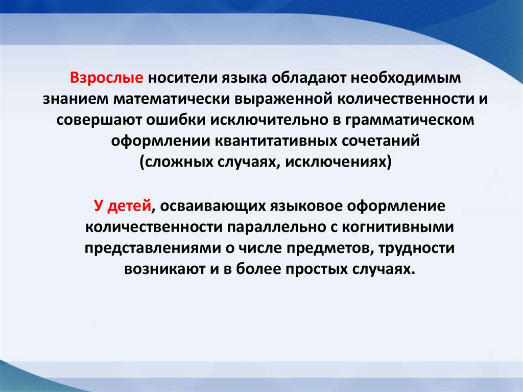 Взрослые носители языка обладают необходимымзнанием математически выраженной количественности и