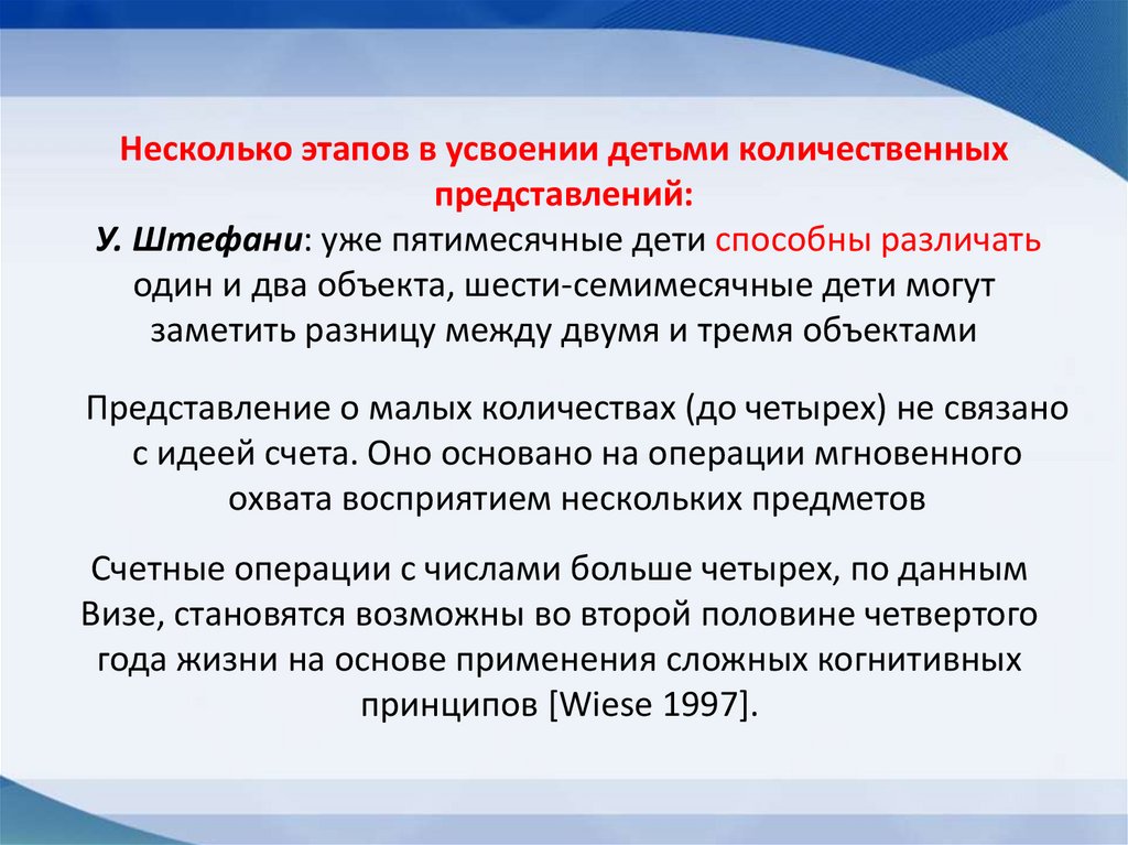 Несколько этапов в усвоении детьми количественныхпредставлений: