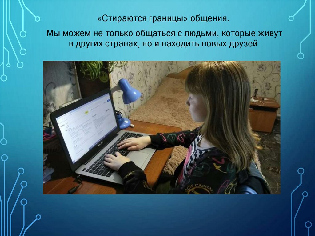 «Стираются границы» общения.Мы можем не только общаться с людьми, которые живут