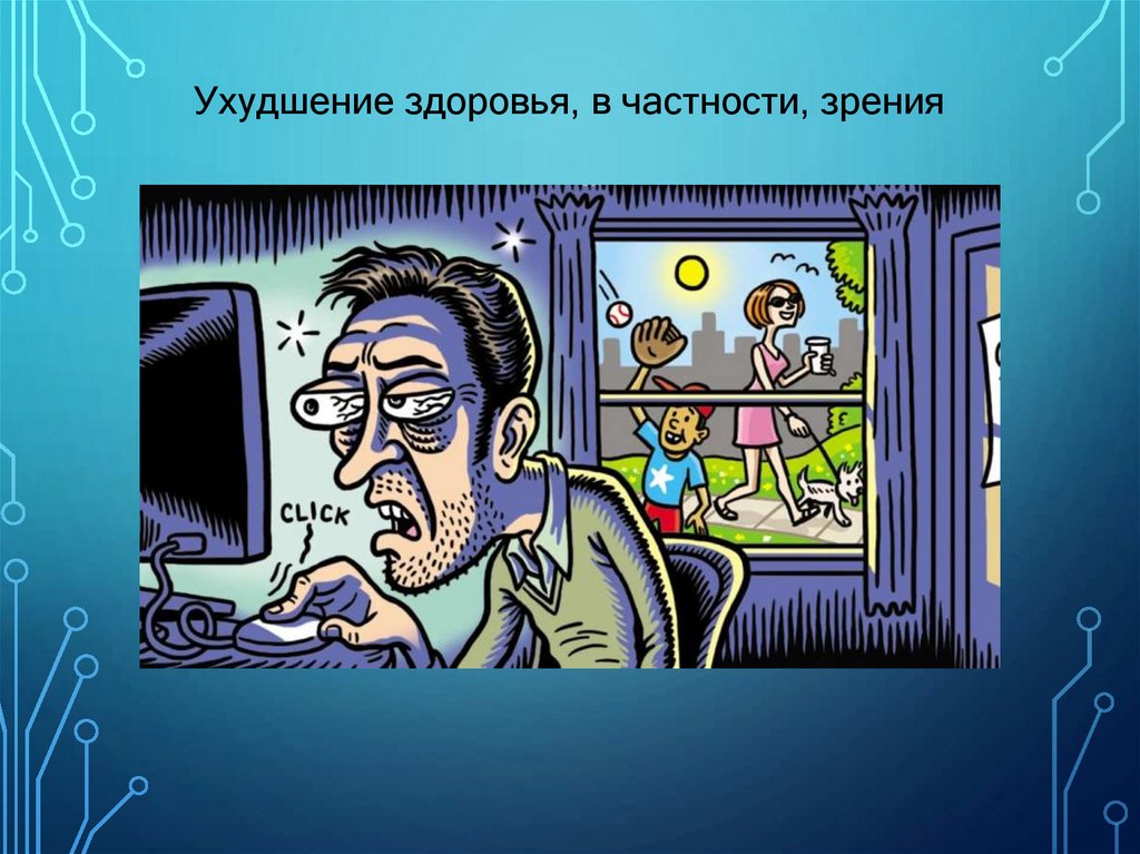 Ухудшение здоровья, в частности, зрения9.