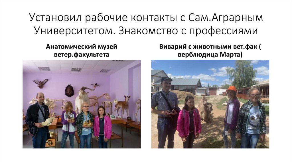 Установил рабочие контакты с Сам.АграрнымУниверситетом. Знакомство с профессиями