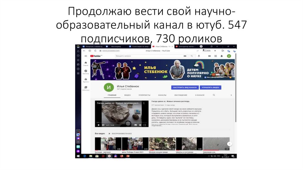 Продолжаю вести свой научнообразовательный канал в ютуб. 547подписчиков, 730 роликов