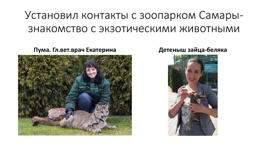 Установил контакты с зоопарком Самарызнакомство с экзотическими животнымиПума. Гл.вет.врач Екатерина