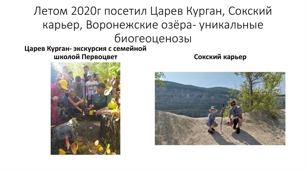Летом 2020г посетил Царев Курган, Сокскийкарьер, Воронежские озёра- уникальные