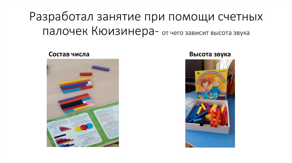 Разработал занятие при помощи счетныхпалочек Кюизинера- от чего зависит высота звука