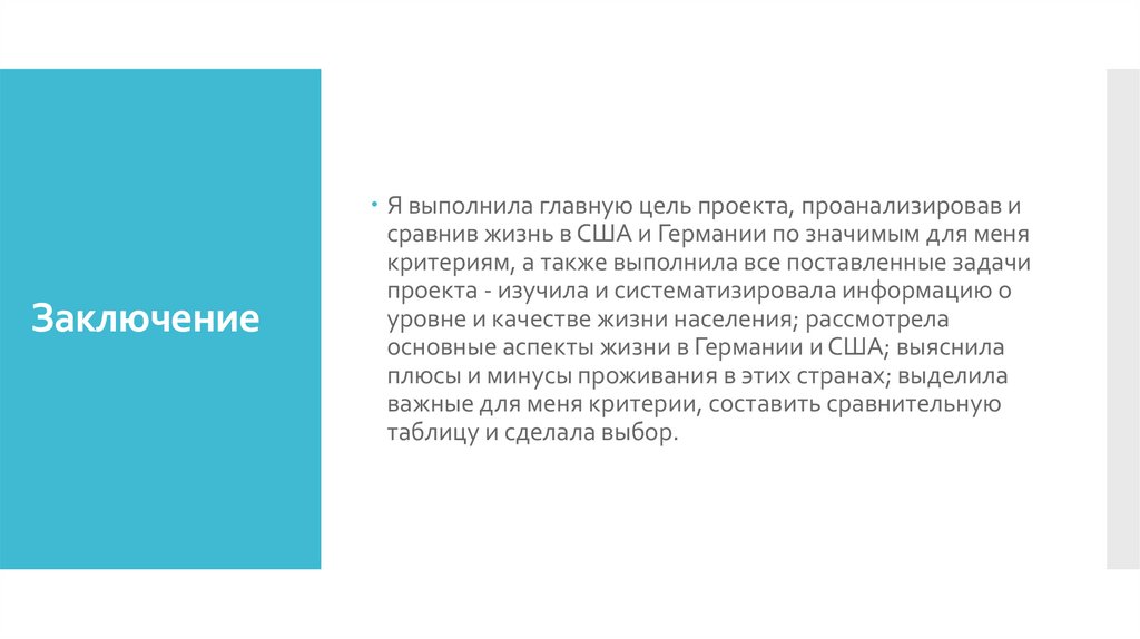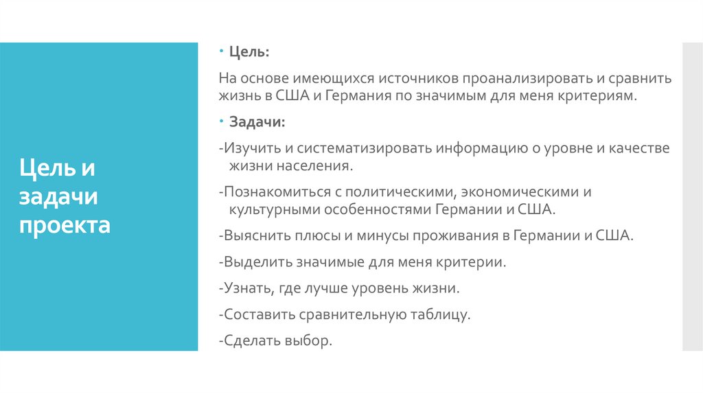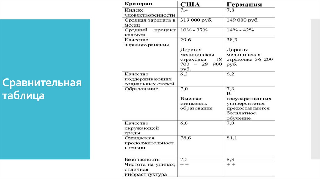 -Выяснить плюсы и минусы проживания в Германии и США.