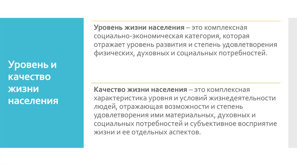 Уровень жизни населения – это комплекснаясоциально-экономическая категория, которая