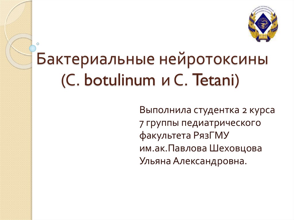 Бактериальные нейротоксины(С. botulinum и С. Tetani)