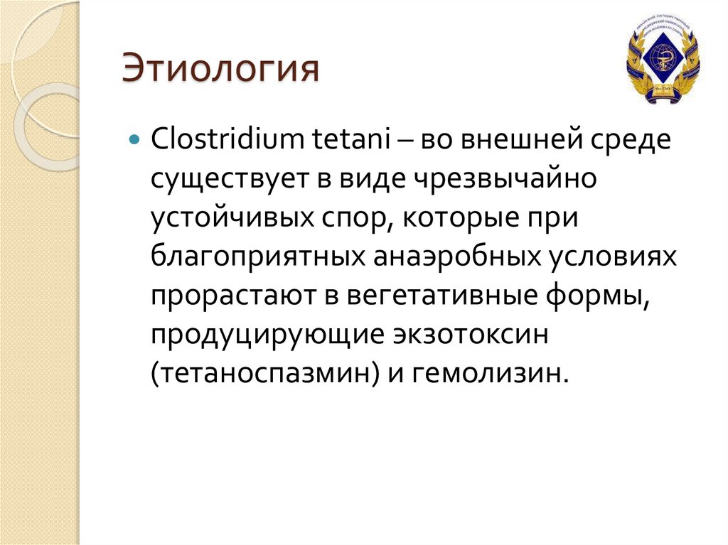 ЭтиологияClostridium tetani – во внешней среде