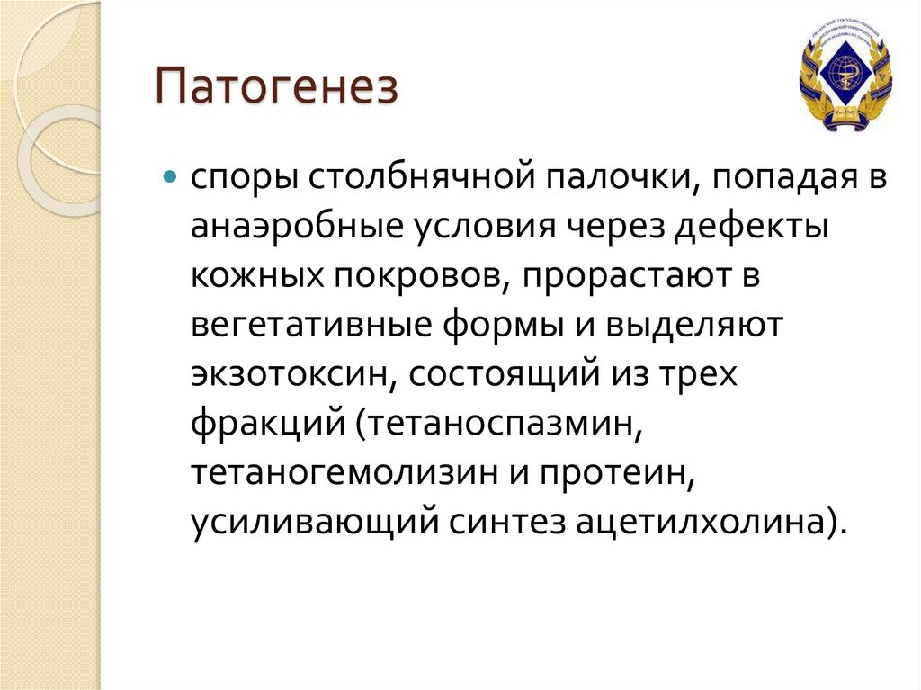 Патогенезспоры столбнячной палочки, попадая в