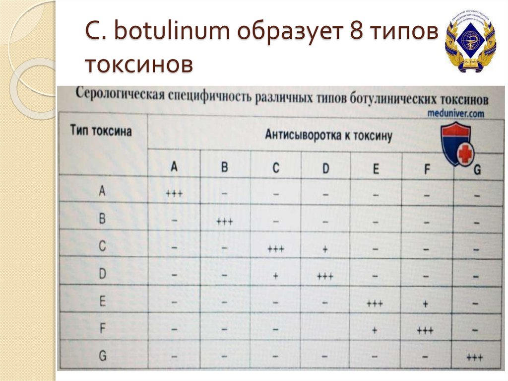 С. botulinum образует 8 типовтоксинов