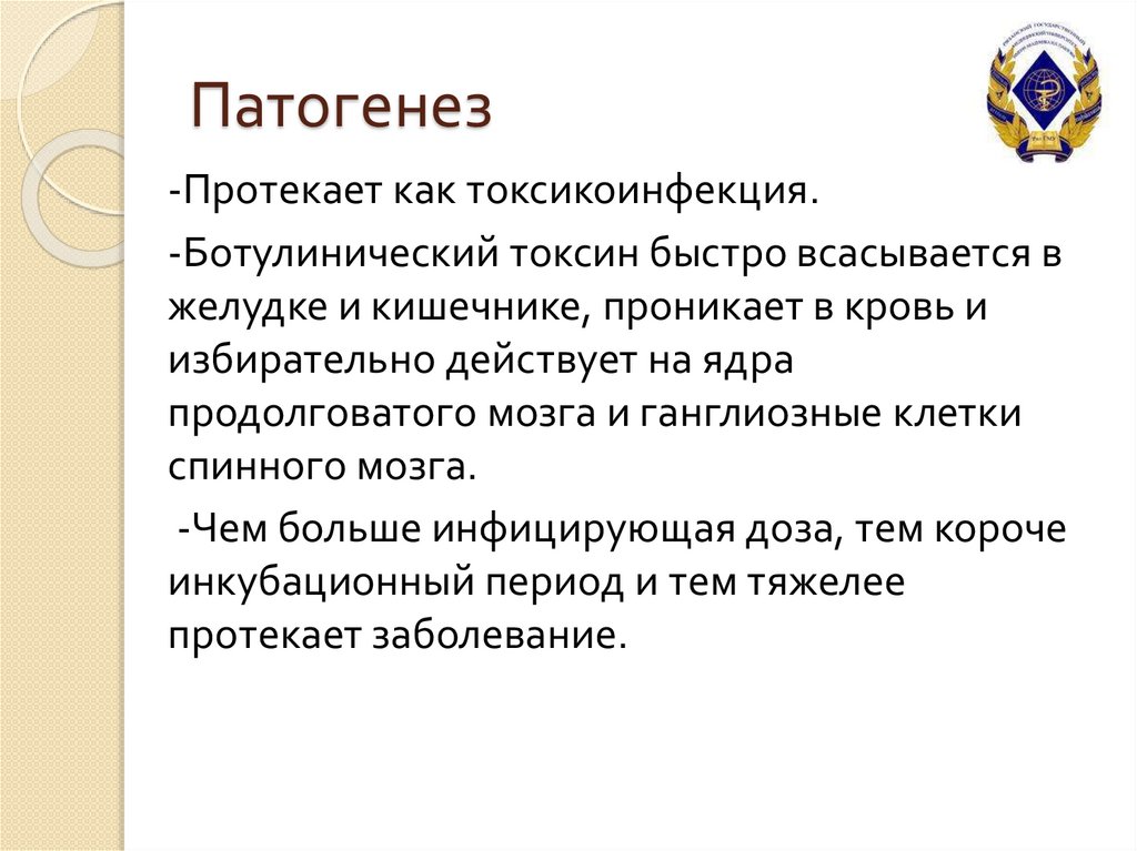 Патогенез-Протекает как токсикоинфекция.