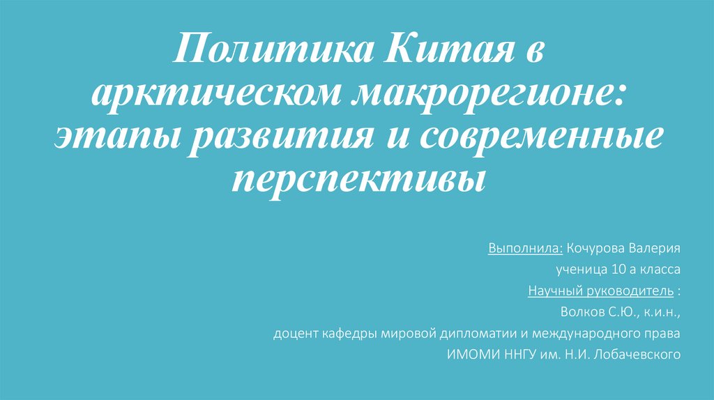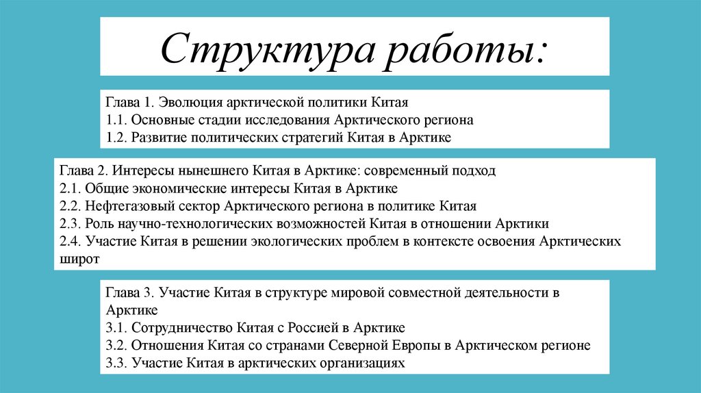 Структура работы:Глава 1. Эволюция арктической политики Китая