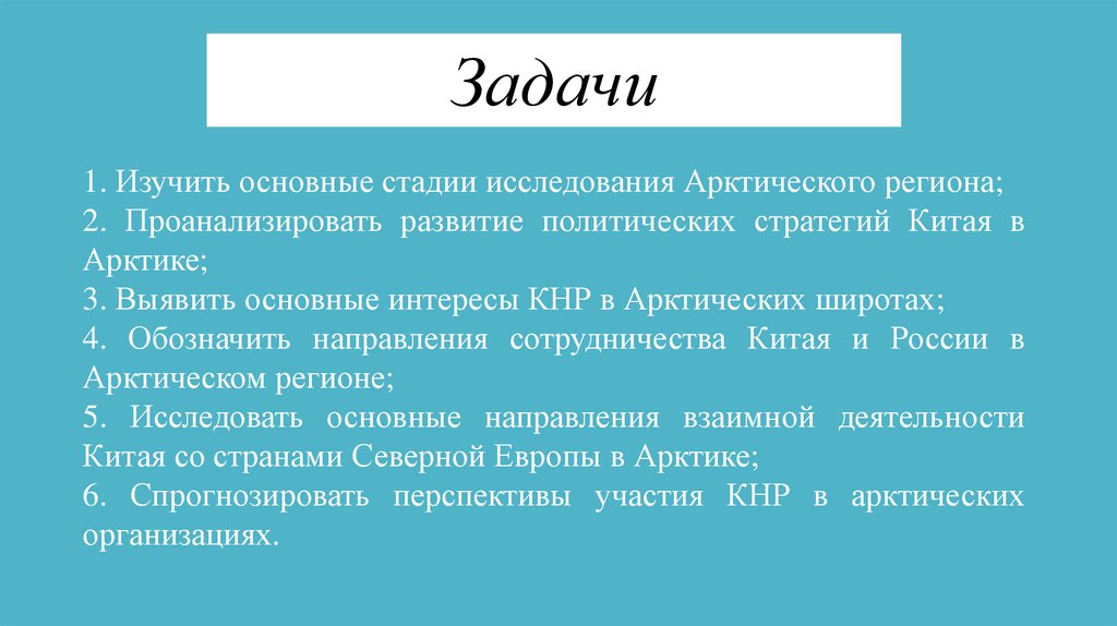 Задачи1. Изучить основные стадии исследования Арктического региона;