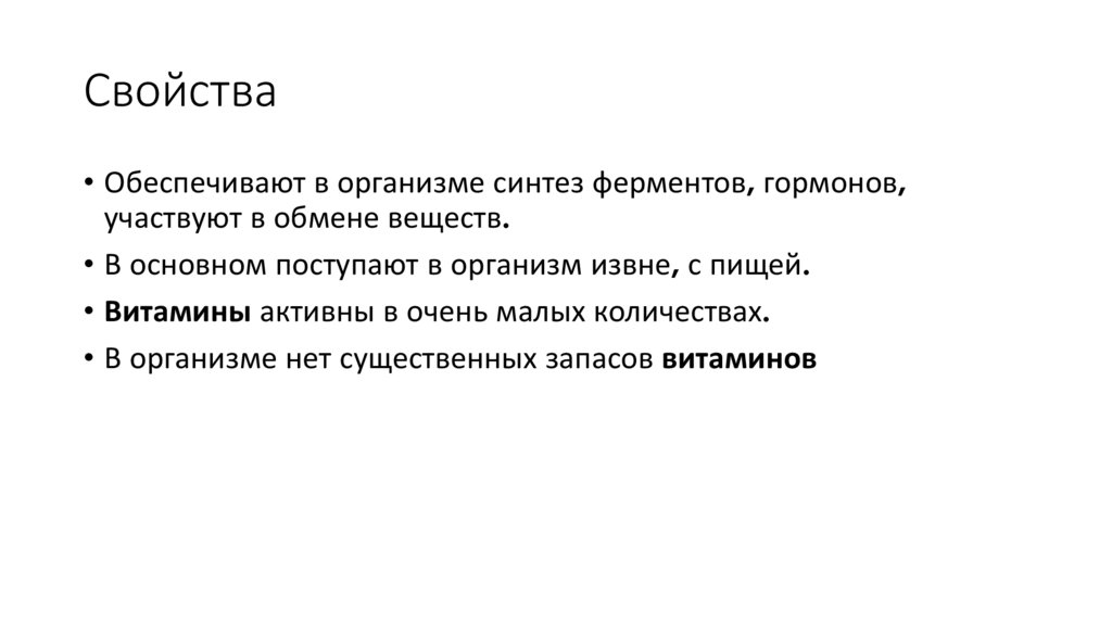 Свойства• Обеспечивают в организме синтез ферментов, гормонов,