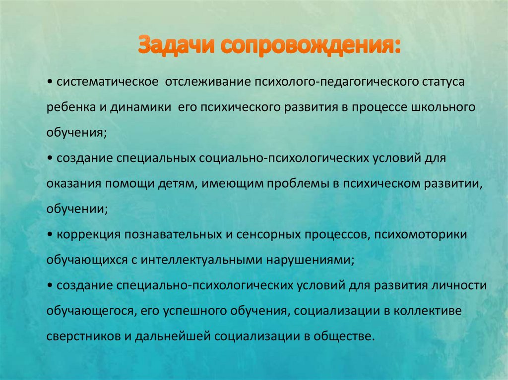 • систематическое отслеживание психолого-педагогического статусаребенка и динамики его психического развития в процессе школьного