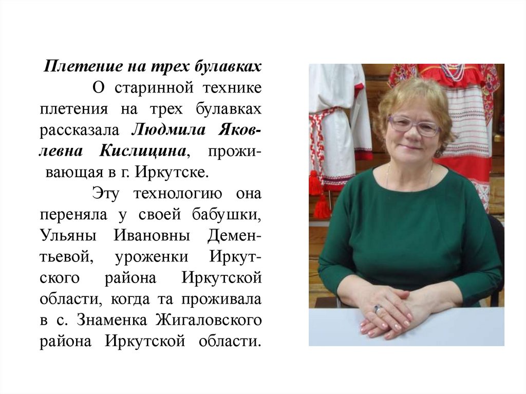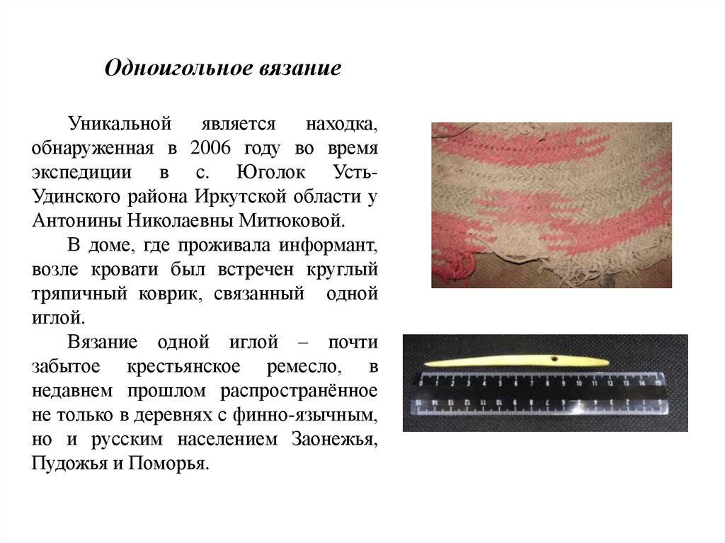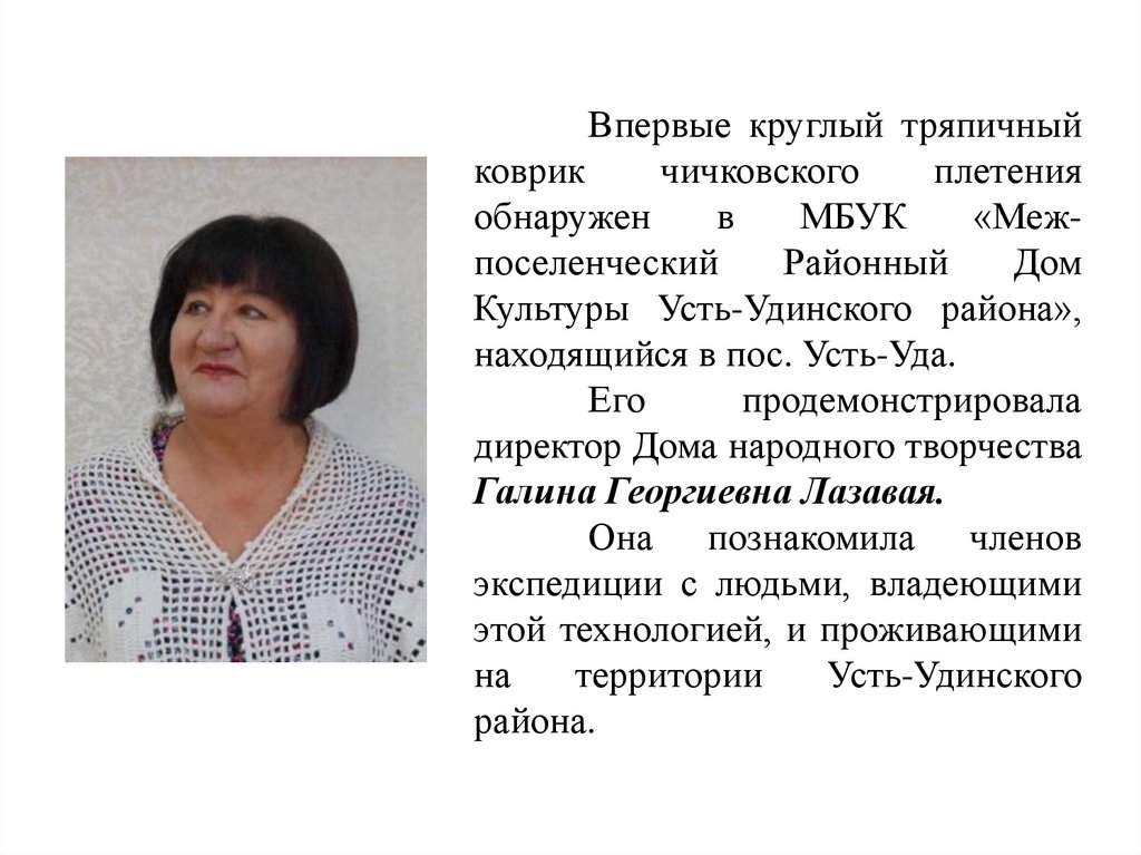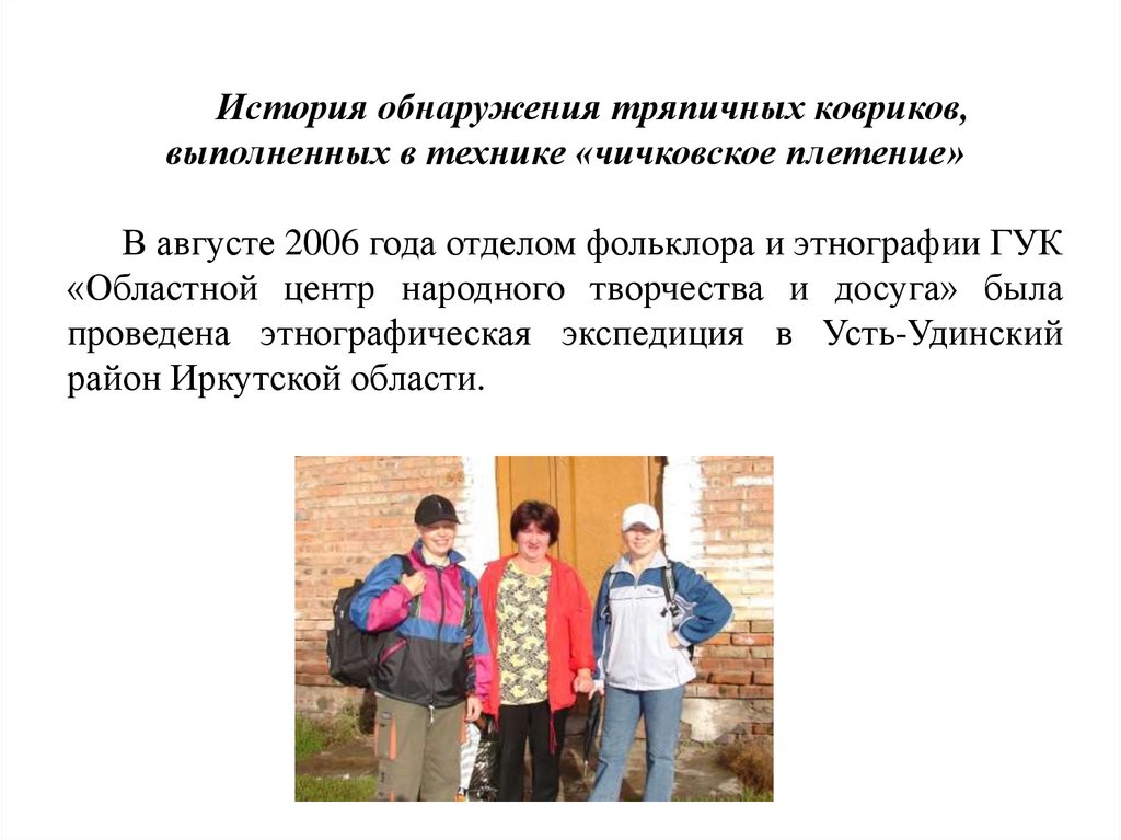 В с. Чичково Усть-Удинского района была встреченанеизвестная технология плетения и ей посвящается целая